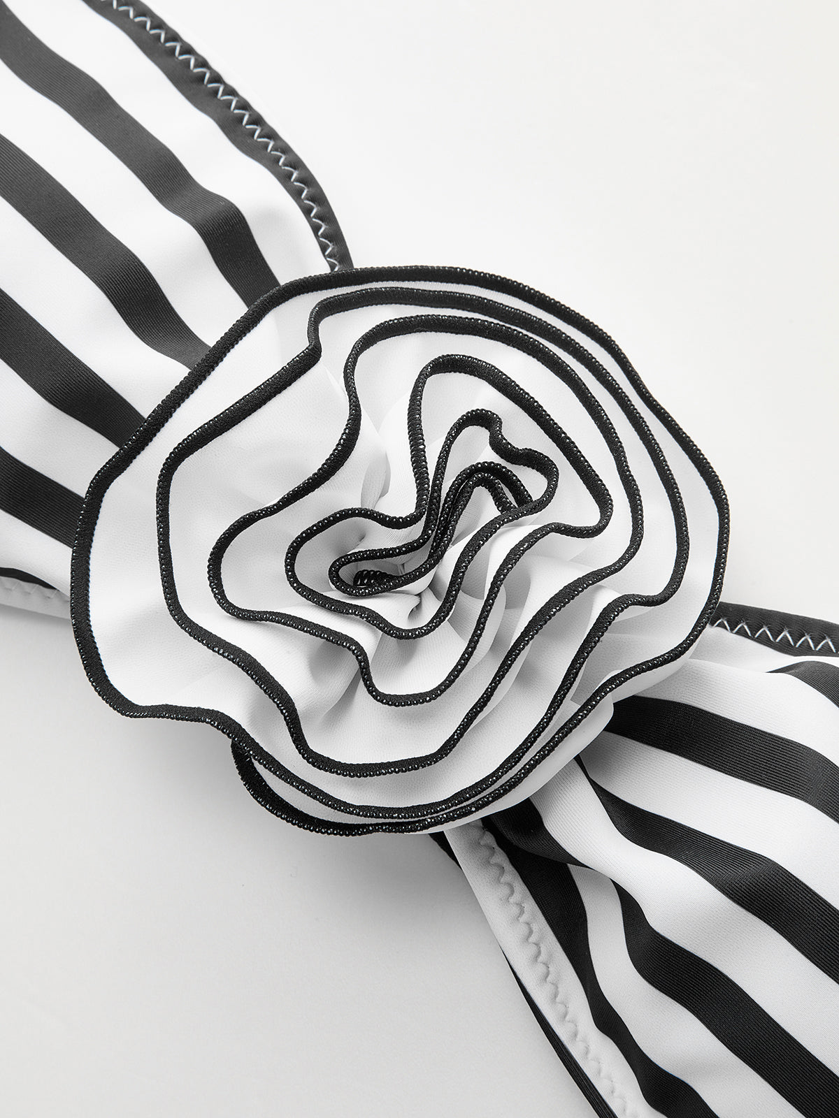 Striped Floral Detail Bandeau Bikini Set